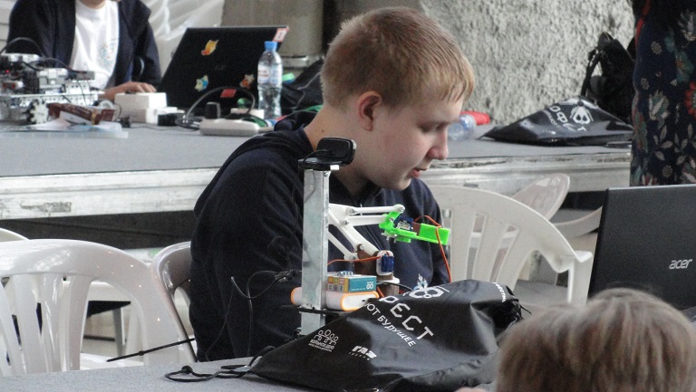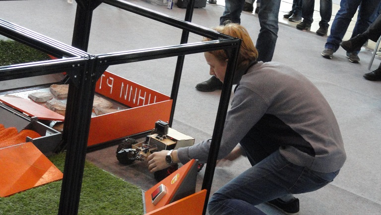 В номинации РТК воспитанники Центра представляли робота, способного преодолевать полосу препятствий, состоящую из элементов различной сложности: песок, трава, подвесной мост и даже задымленное помещение. Сегодня проходили тестовые заезды, в которых были выявлены некоторые недоработки в системе управления. Однако, модель робота была высоко оценена командой жюри.