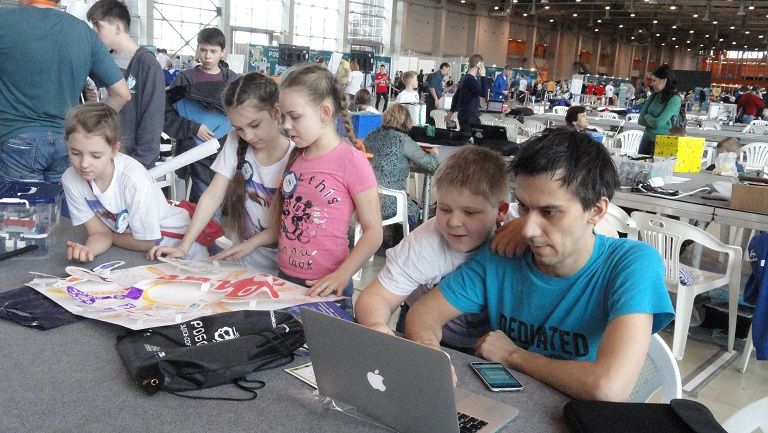 В номинации FLL три команды «Тигры», «Новация» и «Да-бро!» защищали свои проекты - «Спасение амурских тигров», «Инновационный зоопарк», «Страусинная ферма», также выполняли задания на командообразование. Умение работать в команде является основной базовой ценностью этой номинации. Завтра ребятам предстоят тестовые заезды роботов.